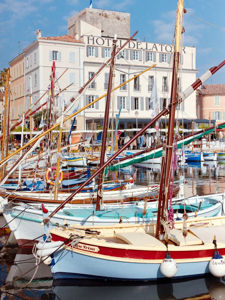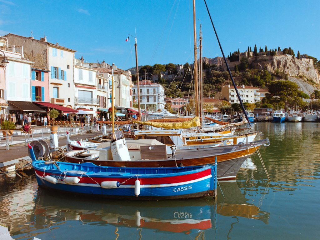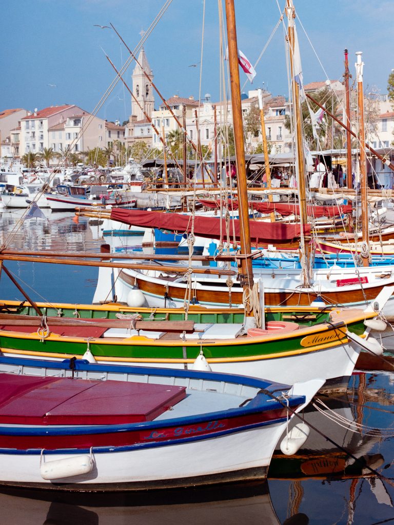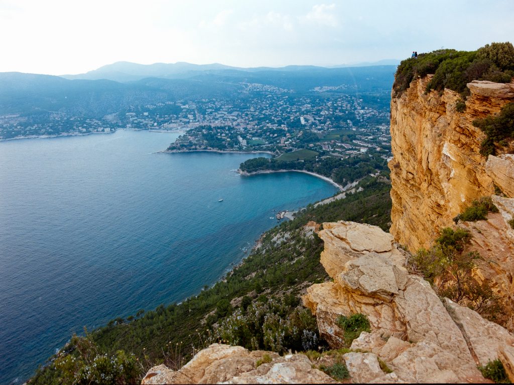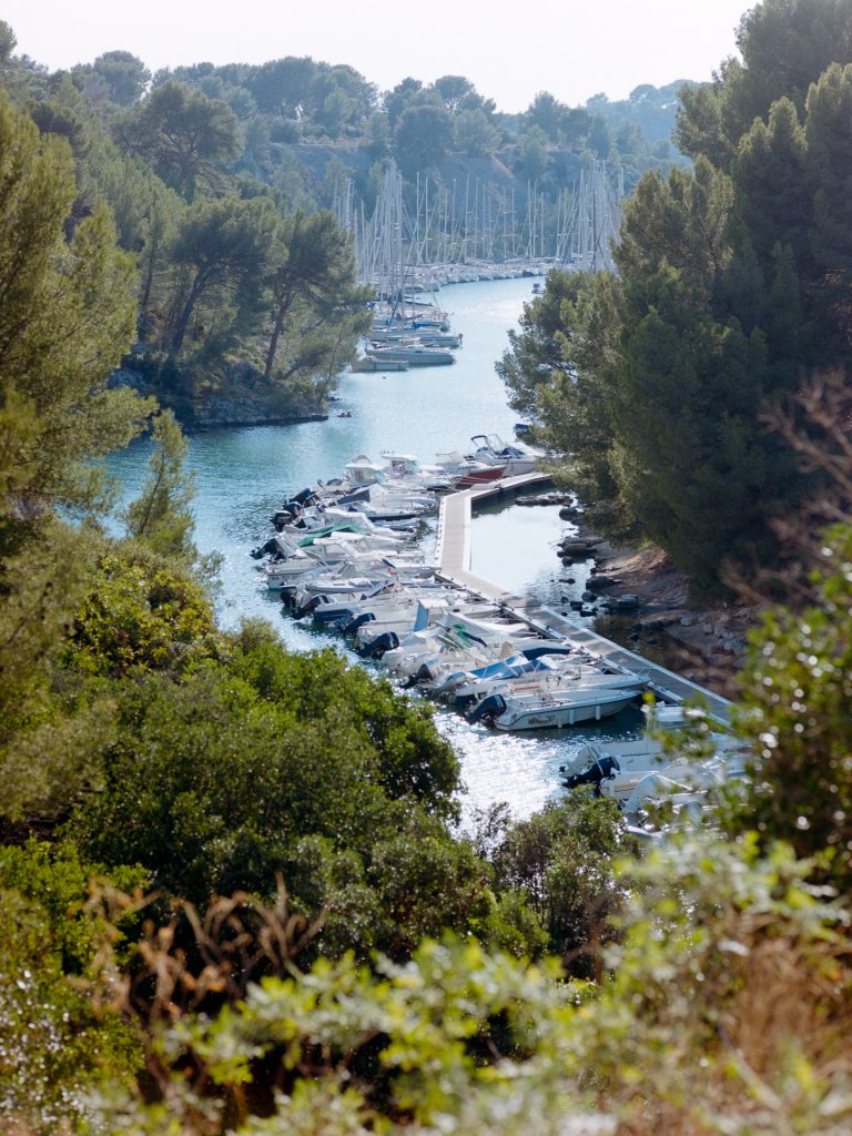 Neben schönen Landschaften gibt es reichlich pittorske Hafenstädtchen zu bewundern. Sanary bietet einmal die Woche einen lebhaften Markt (mit nerviger Parkplatzsuche) und viele bunte Einmaster im Hafen. Cassis dagegen gibt sich mondäner, mit vielen Straßencafes und Restaurants. Ein besonderes Highlight sind die Calanques: schmale tiefe Buchten, die mehrere hundert Meter ins Landesinnere führen, mit steilen Rändern. Nichts, was ich mit der schweren 645 Ausrüstung erwandern wollte, aber für einen Schnappschuss von oben auf den kurvigenYachting Club des Calanques de Cassis hat es gereicht. Den schönsten Blick auf Cassis bieten aber die Falaises de Cassis, die Klippen von Cassis, ein kurzes Stück zurück auf der Route des Crêtes zurück Richtung La Ciutat.