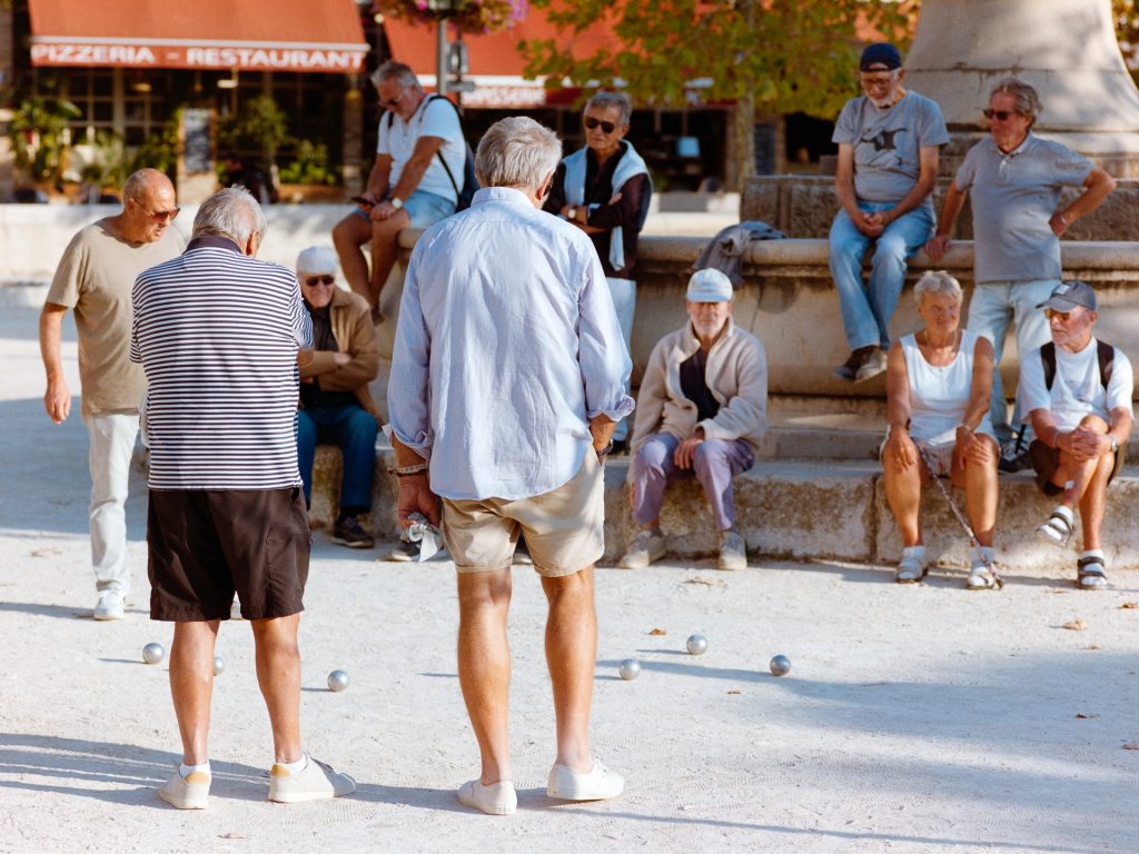 Als einziges Dorf mehr im Landesinneren und nicht an der Küste, haben Pia und ich abschließend Le Castellet besucht, während die Kinder wie so oft die Vorzüge des Ferienhauses (und Abwesenheit der Eltern) genossen. Der Ort liegt mit seinem verwinkelten Gassen malerisch auf einem Hügel, auf halber Strecke zwischen unserem Wohnort Signes und Bandol am Meer. 2022 erhielt Le Castellet das Prädikat Les plus beaux villages de France als kulturtouristische Auszeichnung – wie so viele pittoreke Dörfer der Provence. Und so dominieren im Stadtkern auch viele Cafes und Geschäfte mit touristischer Ausrichtung (denen ich kein analoges Bild gegönnt habe). Wie an so vielen Orten, die wir in dieser Woche besuchten, fragten wir uns, wie es hier wohl im Hochsommer aussehen würde …