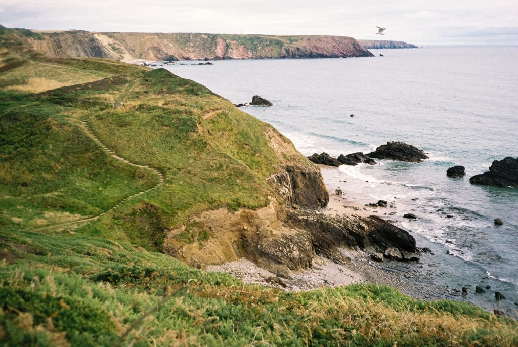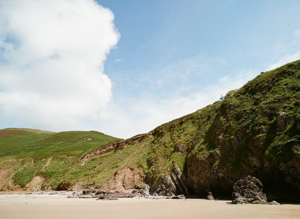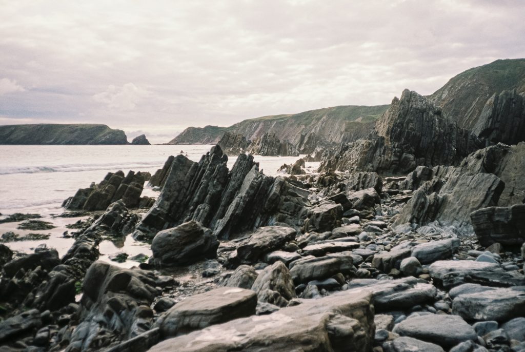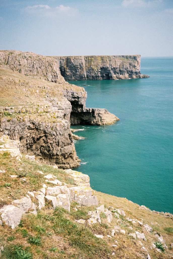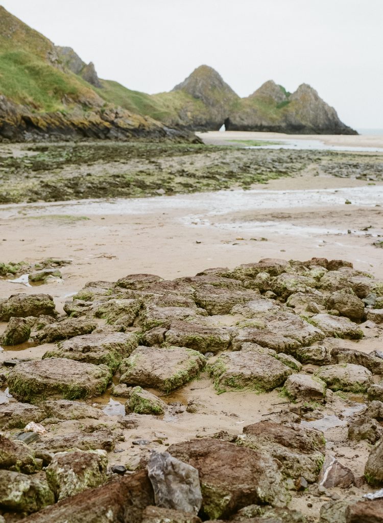 Am nächsten Tag erinnerte ich mich wieder an meine kleine Filmkamera. In der Yashica wartete der Kodak Gold auf seine ersten Aufnahmen. Das Wetter beruhigte sich wieder, so dass wir am späten Nachmittag Marloes Sands im Südosten besuchten konnten. Wir hatten Glück, dass gerade die Ebbe eingesetzt hatte, so wir zwischen den Klippen spazieren (oder eher klettern) konnten.