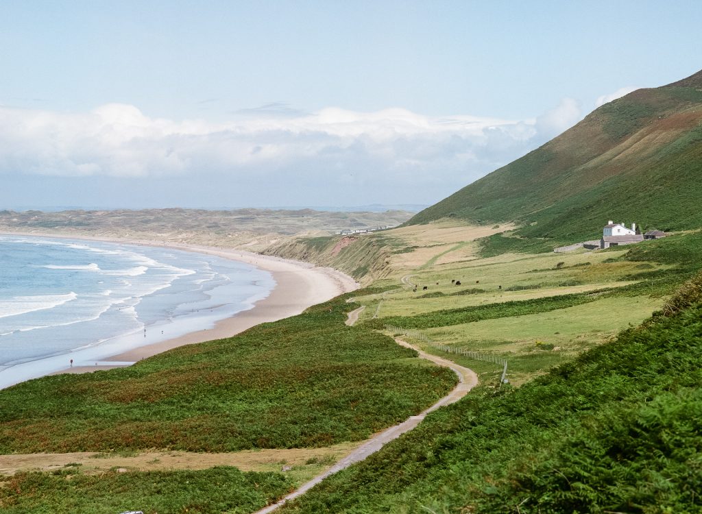 Hier konnten wir an dem Tag auch im Meer baden. Überraschenderweise war das Wasser gar nicht so kalt wie angenommen. Der feine Sandstrand fällt hier ganz sanft ins Meer ab, aber dennoch ist Vorsicht vor der Strömung geboten. Bei Ebbe gibt es das Gerippe eines alten Schiffes zu entdecken. Die Helvetia aus Norwegen war hier 1887 gestrandet. Das letzte Strandbild von Rhossili war dann leider auch das letzte Bild aus meiner PENTAX 645 von diesem Urlaub. Die Kamera verweigerte von nun an das weitere Auslösen. Ich vermute, dies war eine verspätete Folge des Sturzes am Wasserfall von vor drei Tagen.