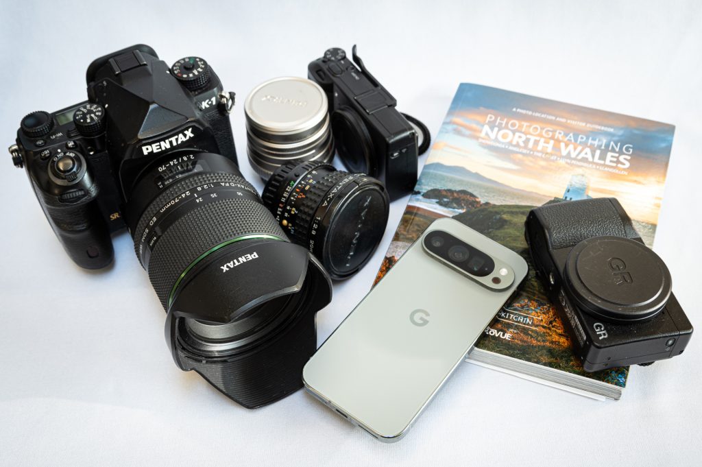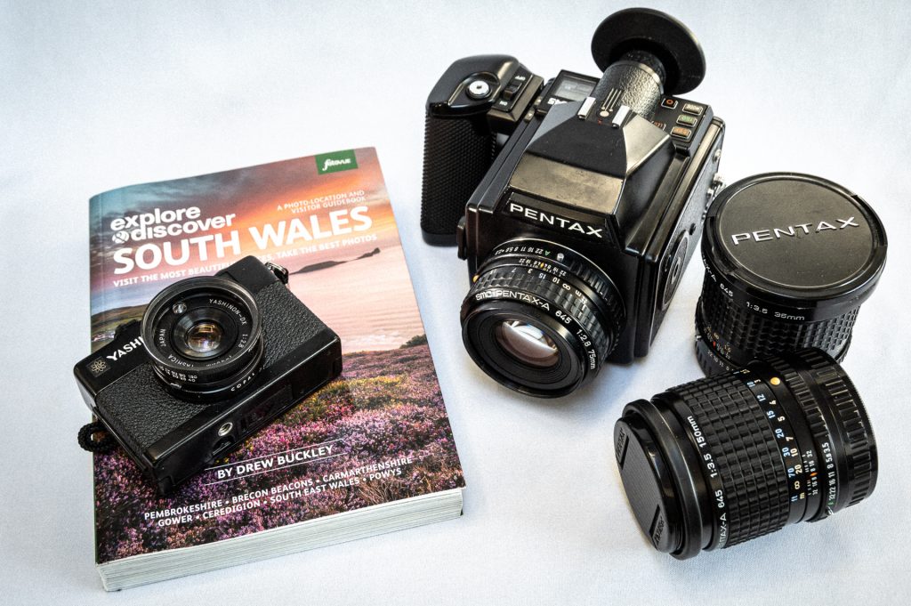 Die beiden folgenden Bilder zeigen meine analoge und digitale Ausrüstung für den Wales Urlaub, die gerade so noch in den Fotorucksack gepasst hat. Eigentlich Wahnsinn, dass ich es einfach nicht schaffe, mich zu begrenzen. Vor Ort nehme ich natürlich immer nur pro Ausflug eine Auswahl mit, aber das ist jedes Mal ein Entscheidungsprozess, der vielleicht auch ein wenig Erholungswert kostet.
