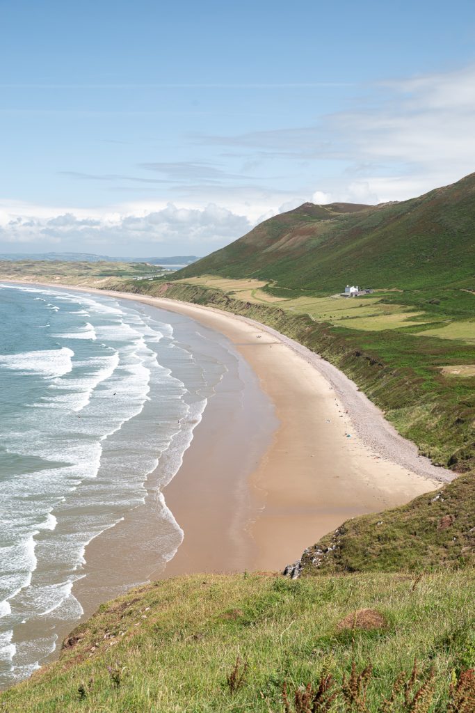 Der letzte Tag in Gower belohnte uns endlich mit Sonne. Zum Glück hatten wir uns den schönsten Strand für diesen Tag aufbewahrt: Rhossili Bay (Beach) ganz im Westen der Halbinsel.