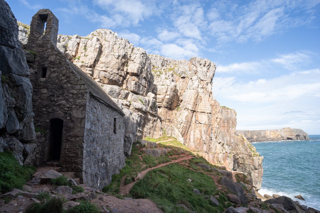 Nicht verpassen darf man die direkt an die Klippenwand erbaute, winzige St. Govan’s Chapel. Diese liegt wenige Meilen weiter östlich von den Stack Rocks am Küstenpfad, ist aber auch mit dem Auto erreichbar. Die Kapelle liegt unten wenige Meter über Meereshöhe und ist über eine Steintreppe erreichbar.
