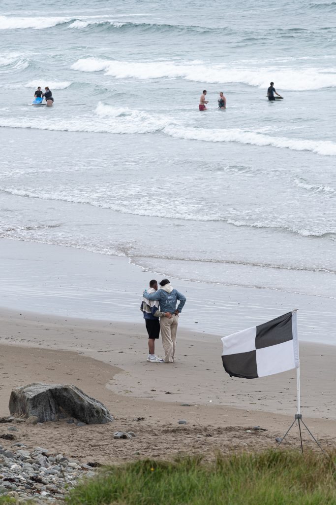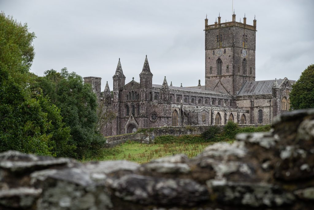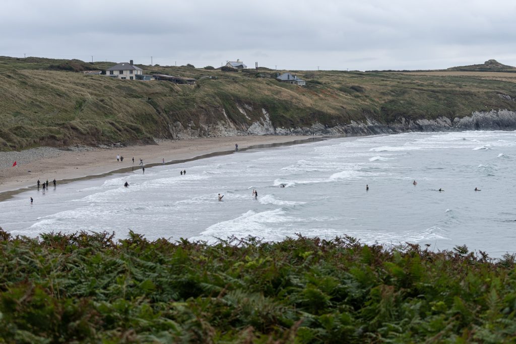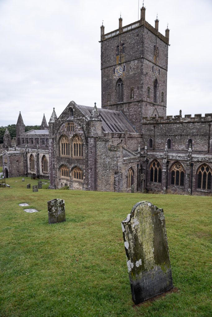 Am nächsten Tag war Regen angesagt, so dass wir uns für den Tagesausflug ein Ziel mit Dach über den Kopf gesucht haben, nämlich die eindrucksvolle St Davids Cathedral im Norden von Pembrokeshire. Aber ein Tag in dieser Gegend ohne Küste und Strand? Für uns nicht möglich, daher gab es noch einen kurzen Abstecher zur nahegelegenen Whitesands Bay, wo die Menschen dem schlechten Wetter im Meer trotzten. Wir haben lieber zugeschaut und den nächsten Badeaufenthalt verschoben.