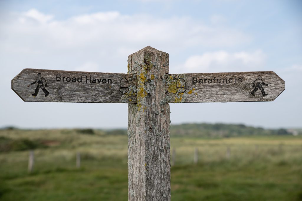 Noch am Abend nach unserer Ankunft in unserem Ferienhaus in Steynton bei Milford Haven wollten meine Frau und ich das Meer wieder sehen und wir fuhren zum nahegelegenen Strand von Broad Haven (North), um ein paar Meter auf dem Küstenpfad zu laufen. Apropos Küstenpfad: egal wo an der Küste, überall findet sich ein Zugang zum Wales Coast Path. Dieser Fernwanderweg verläuft die gesamte walisische Küste entlang, beginnend bei Chepstow im Süd-Osten bis weit hinter Conwy im Norden, insgesamt über 1400 Kilometer lang.