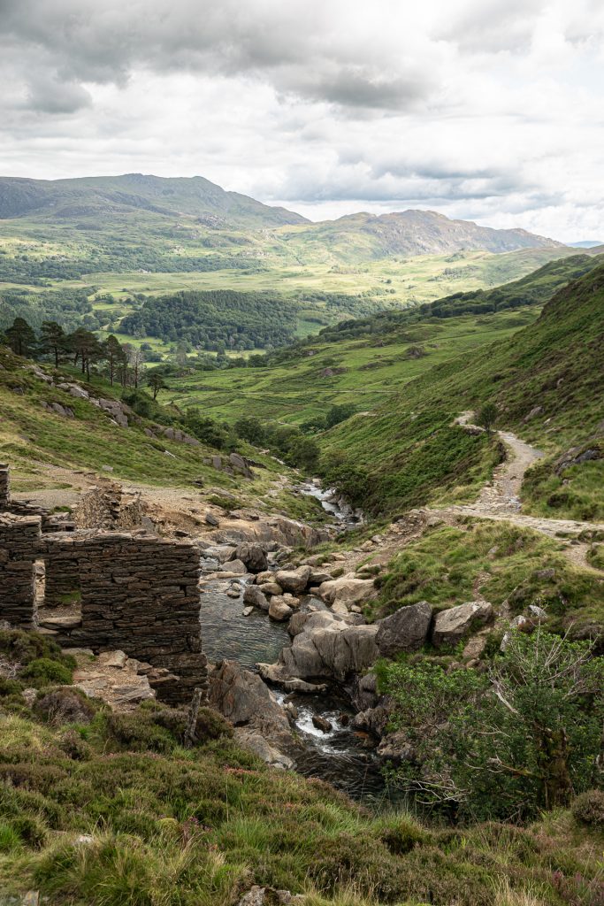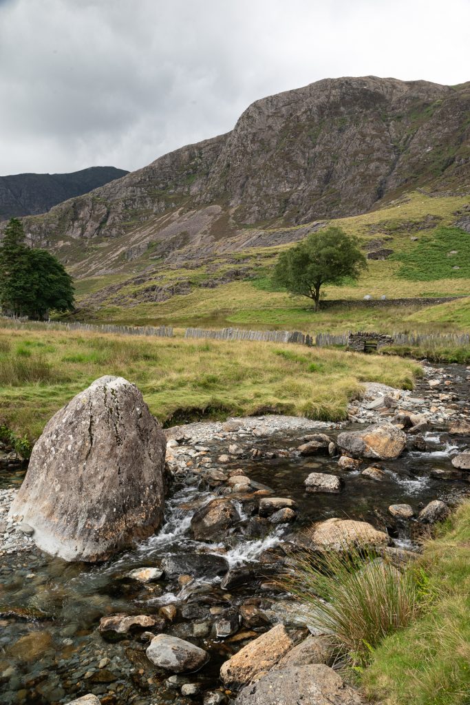 Am nächsten Tag sollte es der Snowdon werden, zumindest der halbe. Wir hatten nicht den Ehrgeiz, den Gipfel zu erklimmen, sind aber dennoch einen der Aufstiegspfade einige Kilometer gewandert. Der Watkin Path beginnt fast auf Meereshöhe und gehört zu den herausfordernden und anstrengenden Aufstiegen auf den Yr Wyddfa. Aber der Anfang ist nicht ganz so beschwerlich und führt an einem wunderschönen Wasserlauf mit kleineren Gefällen vorbei.