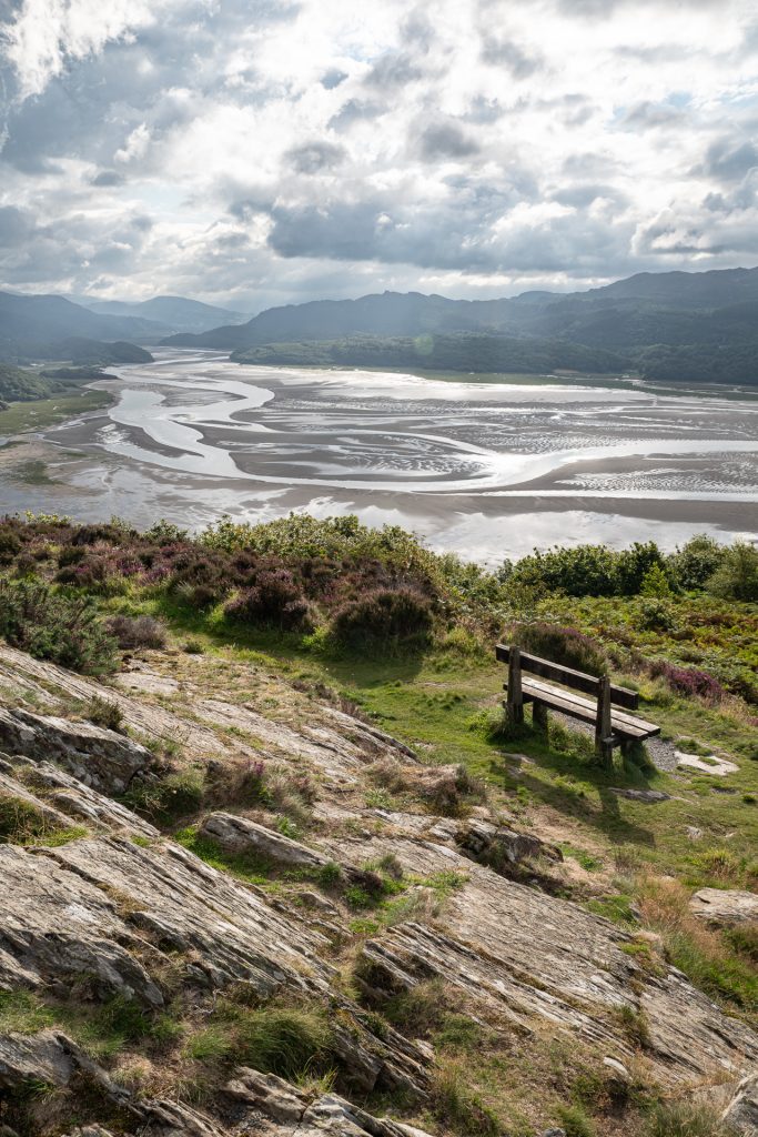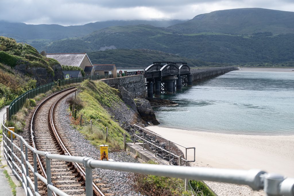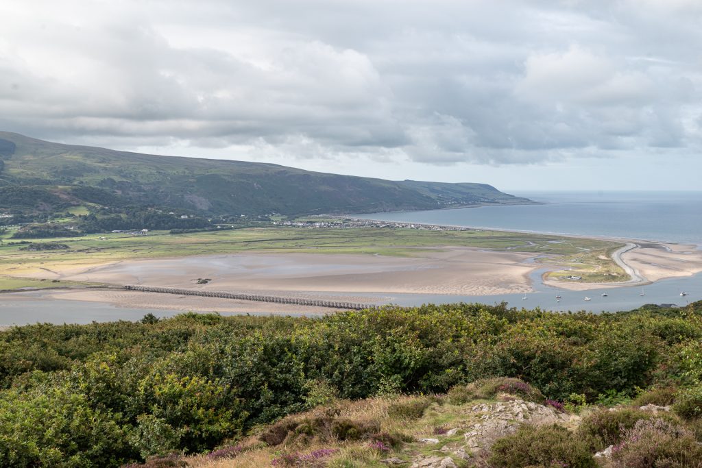 Immer wieder vorgenommen, dann aber doch nicht umgesetzt: frühes Aufstehen zum Sonnenaufgang. Wir Fotografierenden wissen, dass das beste Licht eigentlich am frühen Morgen und den Nachmittagsstunden bis zum Abend vorherrscht, und eben nicht gegen Mittag. Aber ein frühes Aufstehen war nicht kompatibel mit den nachvollziehbaren Wünschen meiner Liebsten, im Urlaub ausschlafen und nicht vor 11 Uhr das tägliche Ausflugsprogramm starten zu wollen. Ich bin ehrlich: auch ich weiß einen langsamen Tagesbeginn im Urlaub zu schätzen. Aber heute war die letzte Gelegenheit, einen kurzen Abschnitt des Panorama Walk bei der Küstenstadt Barmouth am frühen Morgen zu erwandern. Ziel war ein hoch gelegener Aussichtspunkt, um die Mawddach Estuary zu fotografieren, wo der Fluß Mawddach in einer sehr breiten Mündung auf die See trifft. Die Sandbucht wird durchquert von der Barmouth Bridge aus dem 19. Jahrhundert, über die eingleisig die Eisenbahn den Fluss überquert.