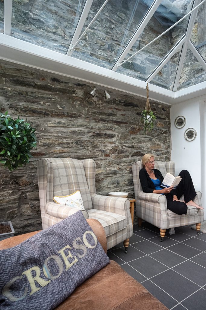 Weil wir unseren Aufenthalt im Süden verlängert hatten, mussten wir das mittige Wales leider viel zu schnell an einem Tag passieren. Unser konkretes Ziel im Norden von Wales an diesem Tag: Isgoed, ein umgebautes ehemaliges Schulleiterhaus in dem kleinen Dorf Talsarnau. Wir hätten es uns nicht besser ausdenken können, aber dieses Anwesen war wie auch das in Pembrokeshire ein Glückstreffer, mit Wintergarten, super gemütlichen Zimmern und einer kleinen Terrasse hinter dem Haus.