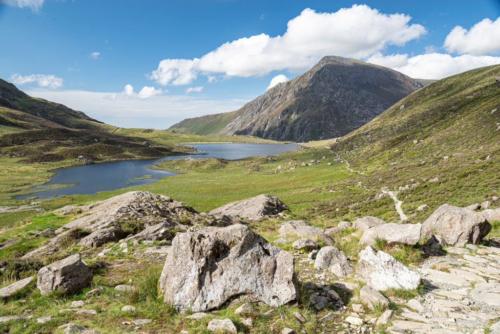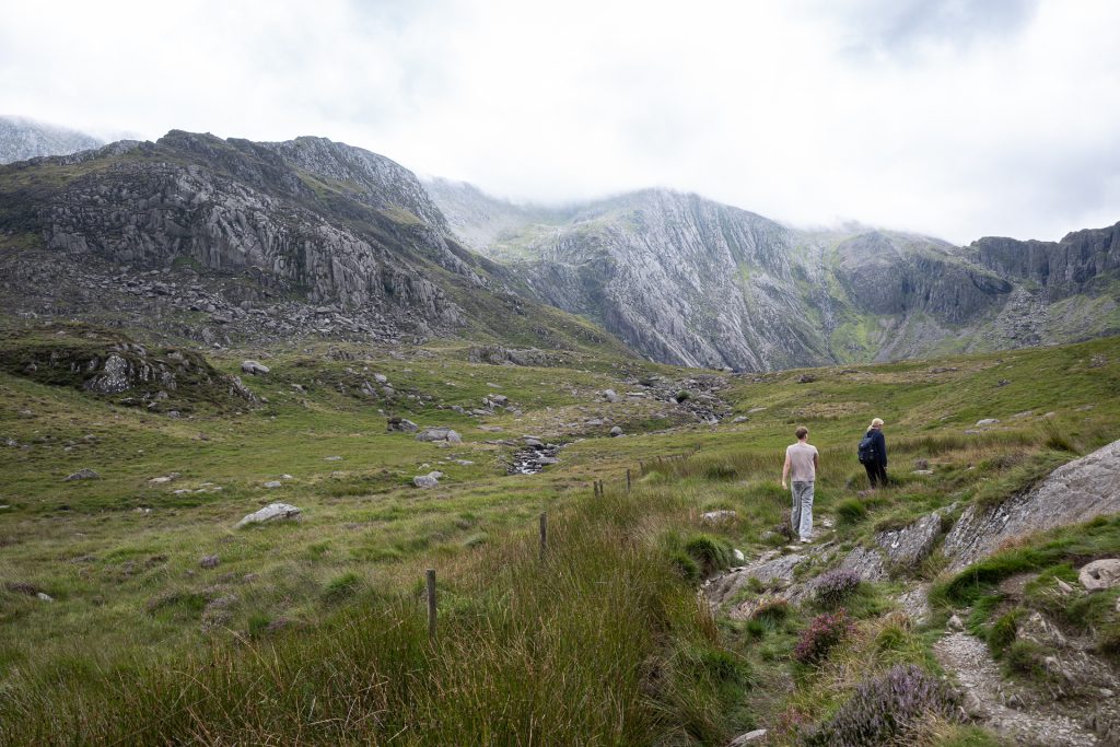 Was wir bisher nicht wussten: das landschaftliche Highlight unserer Reise sollte noch kommen. Für das Ende unserer Woche in Snowdonia hatten wir uns noch einen Ausflug zum Schluss aufgehoben: die Rundwanderung um den Llyn Idwal, einen Bergsee nördlich vom Snowdon. Der Weg beginnt gemütlich am Ufer des Sees, wird dann aber anspruchsvoller und führt einige Höhenmeter hoch in Richtung Twll Du, der Teufelsküche. Dort ist eher kraxeln statt wandern angesagt, und wir mussten schon genau hinschauen, wo eigentlich der Pfad entlang läuft. Dafür belohnt der Aufstieg mit sensationellen Blicken in das Gletschertal.
