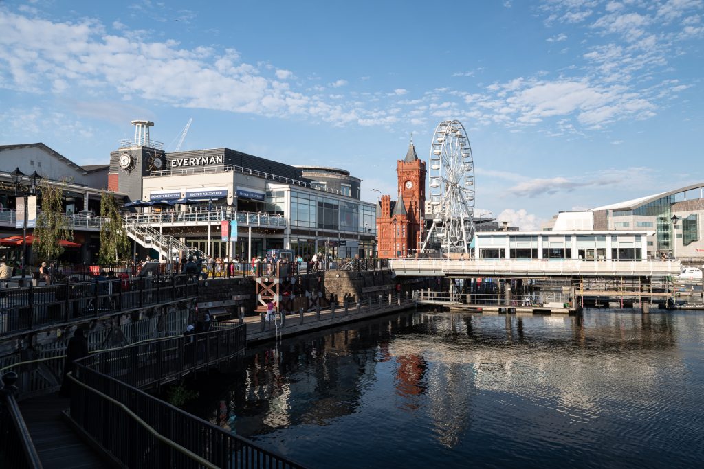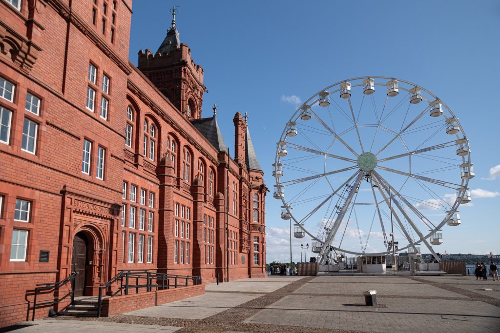 Kurz vor der Rückreise am nächsten Tag besuchten wir Caernarfon, wo wir in unsere erste und auf dieser Reise einzige Burgbesichtigung investierten. Wales ist das Land der Küsten und Burgen, heißt es. Es wurde also Zeit, wenigstens eine zu besuchen. Wir verließen Snowdonia und ließen auf der Rückfahrt das Inland (wie bereits auf der Hinfahrt) links liegen, bis auf einen kurzen Stopp am Caban-coch Reservoir. Letzte Etappe in Wales war die Hauptstadt Cardiff, wo wir für eine Nacht im Hafengebiet an der Bay blieben. Cardiff erschien uns als quirlige Stadt mit lebendiger Atmosphäre, die den Spagat vollzieht zwischen Bewahrung historischer Bauten und moderner Architektur.
