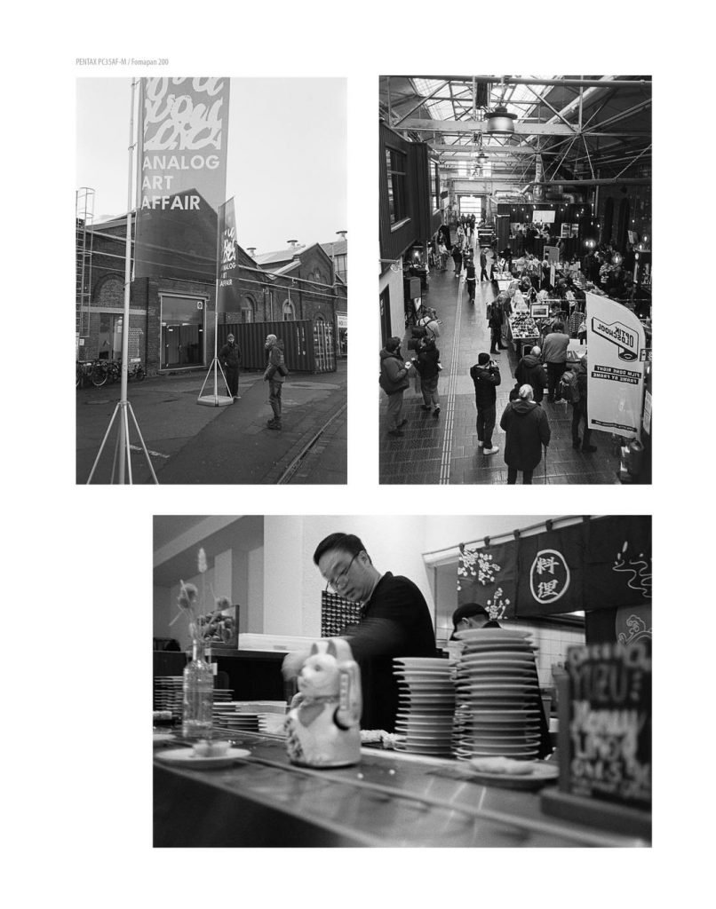 Nochmal zurück zur Analog Art Affair. Die Veranstaltung rund um die analoge Fotografie verdient auf jeden Fall noch ein paar geschriebene Worte. Sie fand dieses Jahr zum aller ersten Mal statt, und zwar in der BASE im Karlswerk, Köln Mühlheim. Ich war mit meinem Sohn Jakob leider nur für zwei Stunden vor Ort, da wir beide noch in der Innenstadt zum Sushi Essen verabredet waren. Zuvor hatte ich aber noch ein paar bekannte Gesichter dort getroffen, so z.B. den Flo vom ISO400 Podcast, Tobi von Urban Filmlab (immer noch mein Nummer-Eins-Labor für Entwicklung und Scans) sowie ein paar Bekannte aus dem Fotografie-Tut-Gut Freundeskreis. Selbst ein paar versprengte Pentaxians sollen vor Ort gesichtet worden sein.